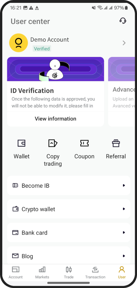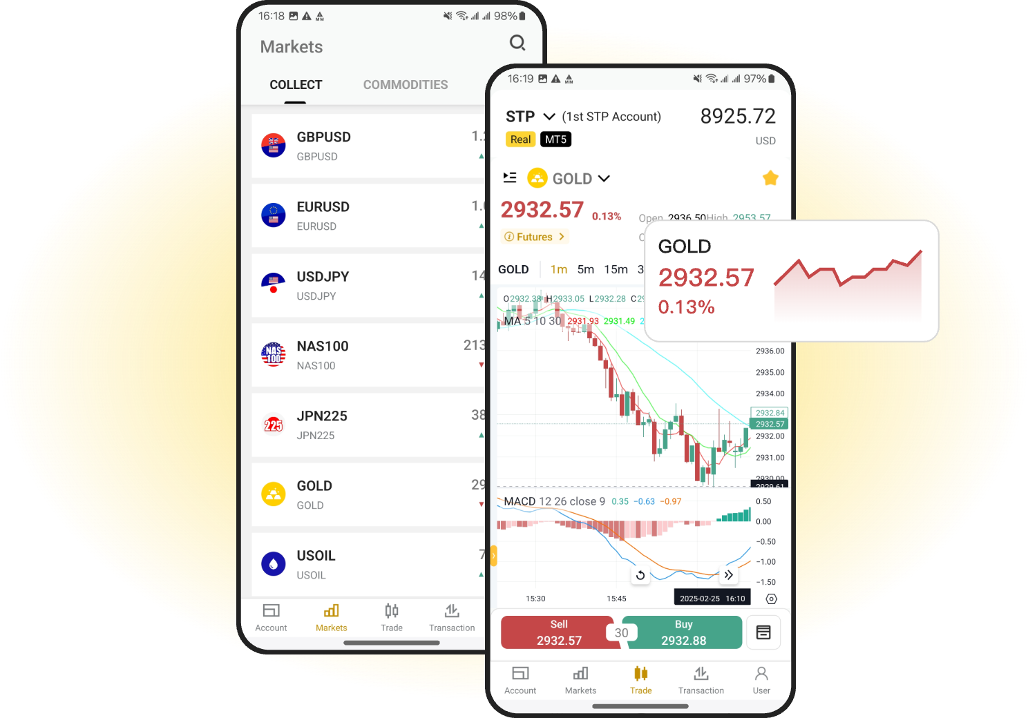 MC Prime cung cấp nhiều loại tài khoản phù hợp với nhu cầu giao dịch của bạn. Bạn có thể dễ dàng gửi tiền thông qua các phương thức thanh toán toàn cầu để đáp ứng nhanh chóng với xu hướng thị trường và tận hưởng việc rút tiền nhanh qua thẻ ngân hàng và USDT. Nhóm chuyên viên hỗ trợ của chúng tôi luôn sẵn sàng hỗ trợ bạn thiết lập tài khoản, tiền gửi, giao dịch và rút tiền. Giao dịch với sự tự tin mọi lúc, mọi nơi, với dịch vụ liền mạch.